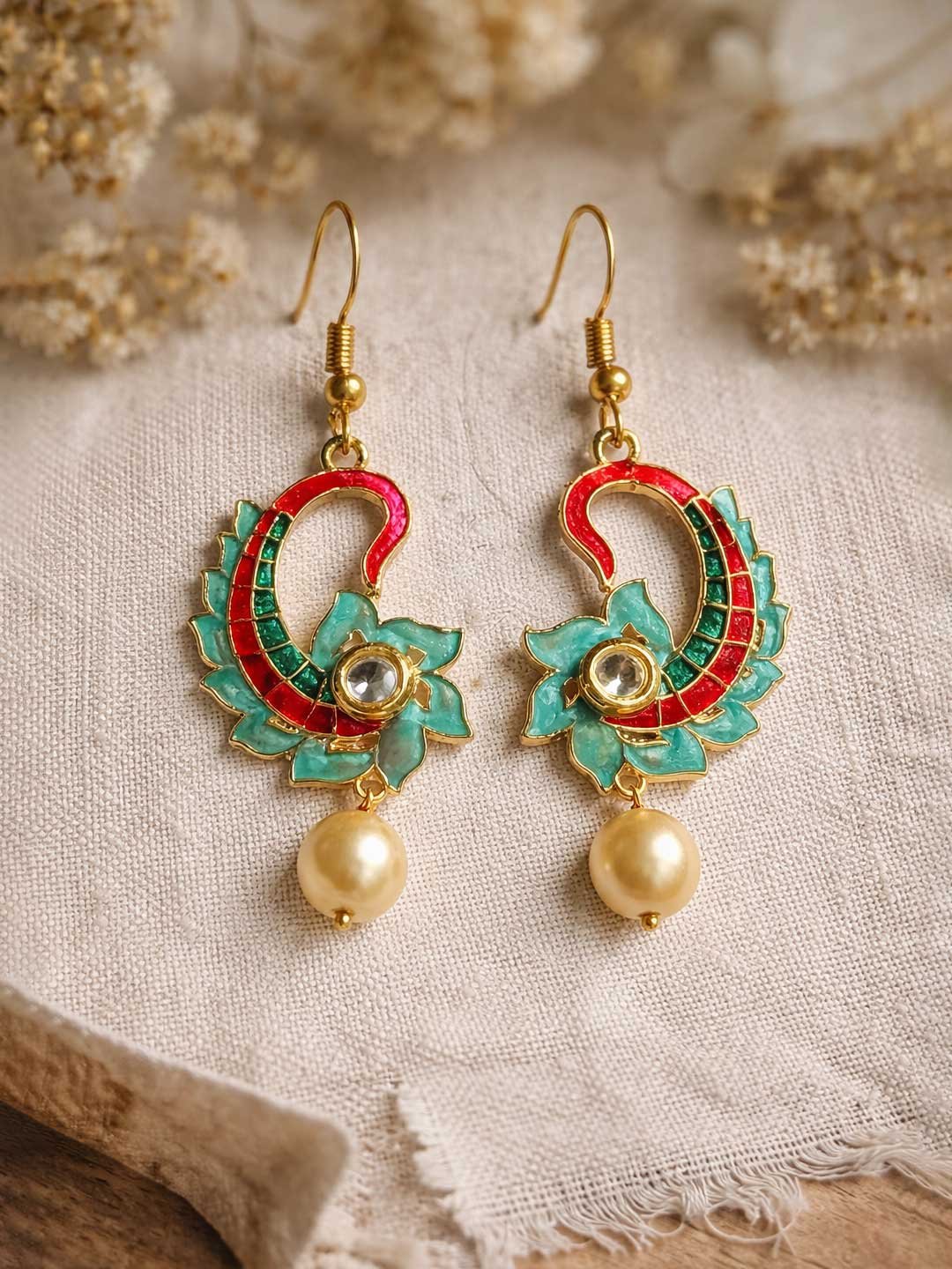 Meenakari Pearl Drop Earrings